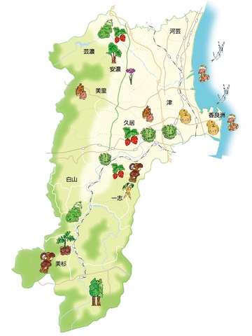 津市の農林水産業をもっと元気にするため、ブランド品目として推進している13品目(こんにゃく、自然薯、いちご、キャベツ、ずいき、茶、梨、花しょうぶ、原木しいたけ、たけのこ、杉、小女子、あさり)の産品です。津ぶっこを使ったレシピも紹介しています。