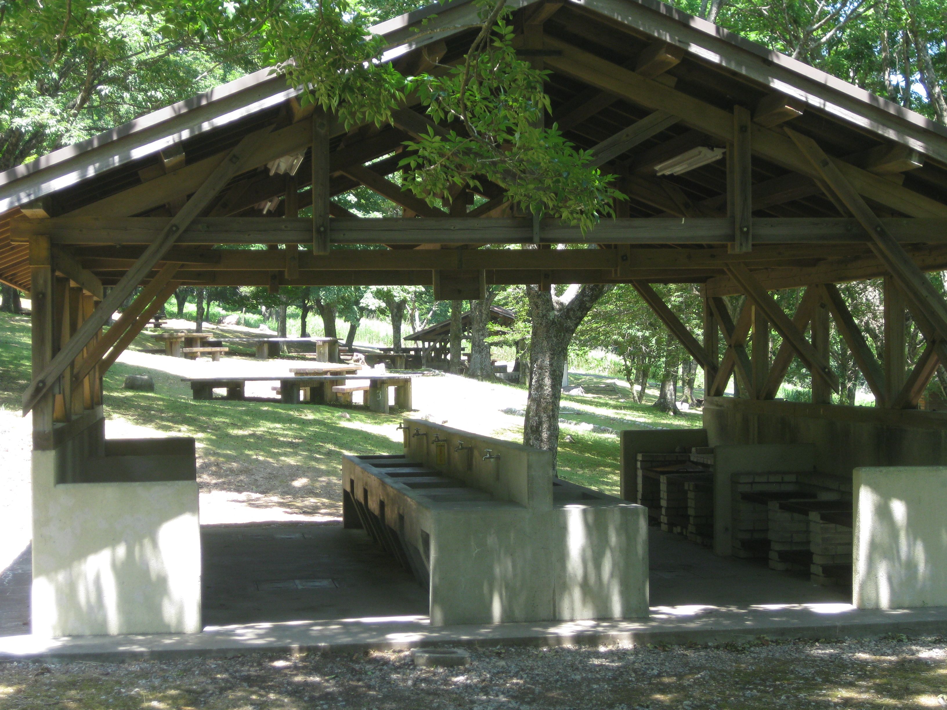 キャンプエリアにある「炊事棟」を撮影したもの。 この炊事棟と同規模の物がもう1棟あるので、団体でも利用することができ、大人数でのキャンプも可能です。 |