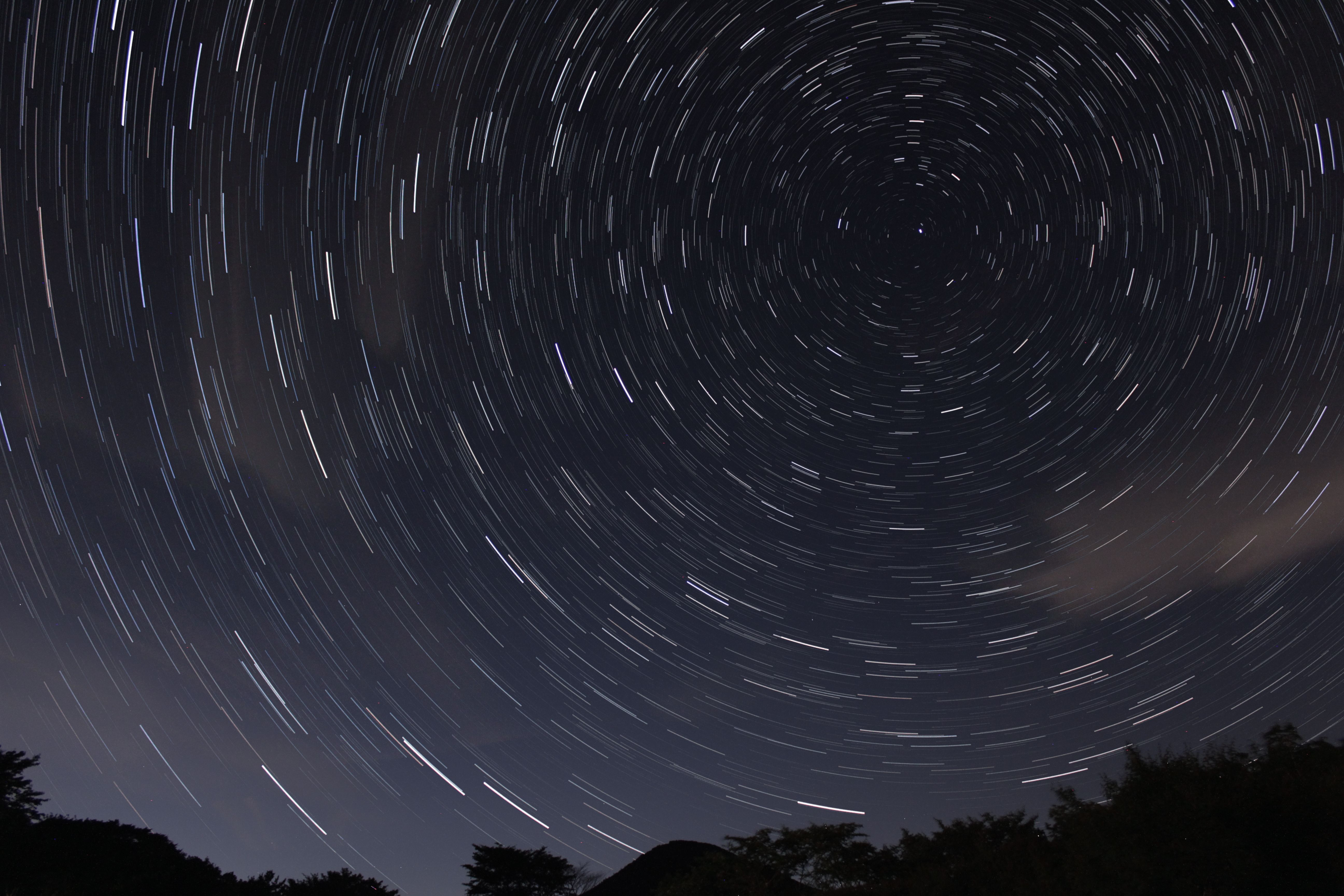 撮影日時:2018年8月18日 0時30分ごろから 撮影場所:津市美杉町八知7956-1「スカイランドおおぼらキャンプ場フリーテントサイト」 撮影設定など:CanonEOSX4 / ISO1600 / シャッタースピード15秒 / 90枚撮影 / F3.5 / 比較明合成 / 色合い等補正
