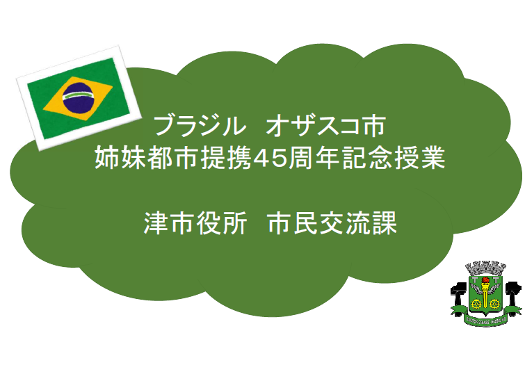 こうした津市の状況を背景に、津市とオザスコ市の交流について、小学生・中学生に向けて記念授業を行いました。また授業では津市に暮らすブラジル人住民による講演も行い、ブラジルと日本の違いや日本で体験したこと、外国人と日本人がともに生活していくための多文化共生についての思いなどを聞きました。