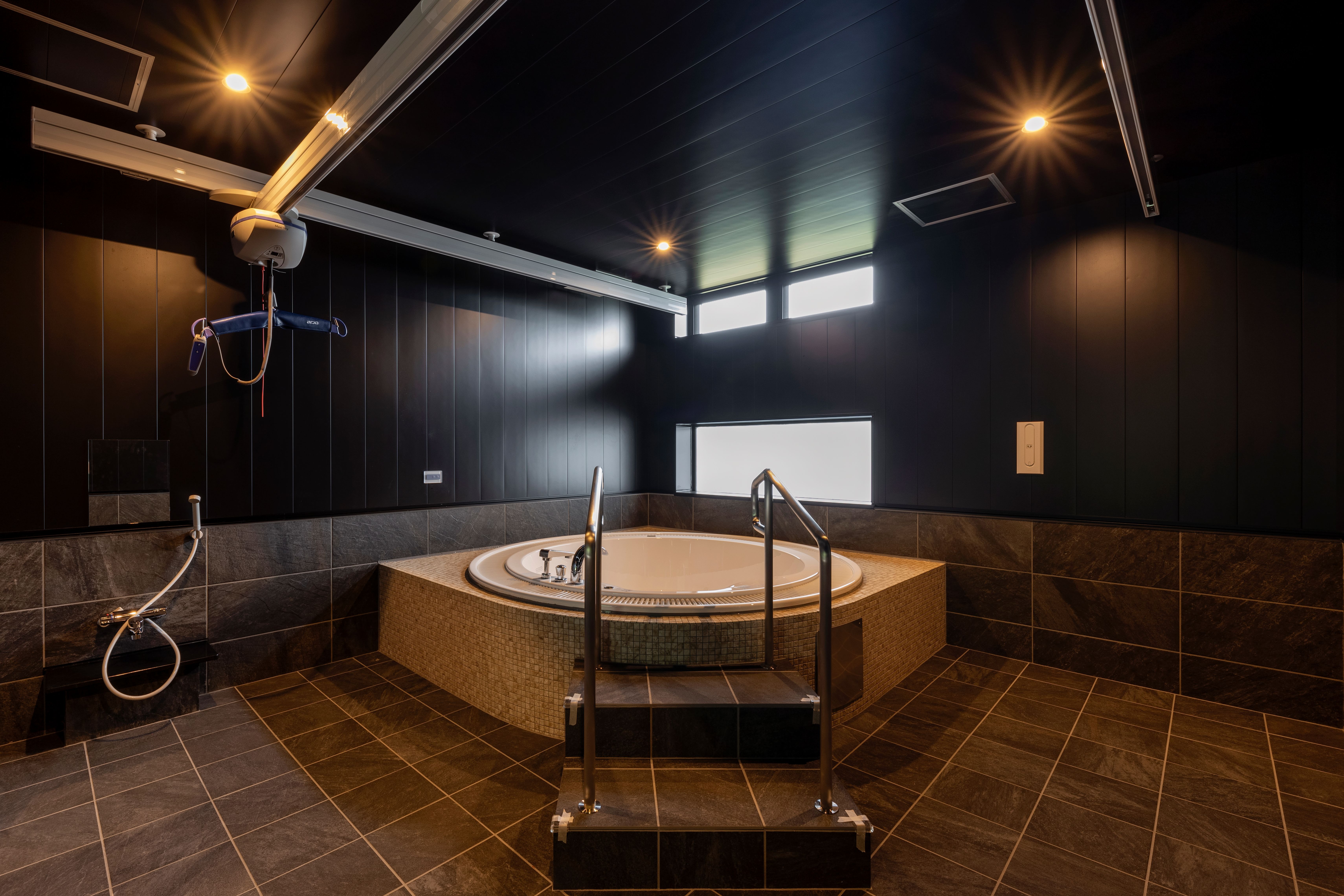 また、観光旅行が困難な障がい者や介助が必要な高齢者の利用に特化した福祉旅館[注]として、全館バリアフリー、車いす対応の貸切風呂、リフト付きジャグジーを備えています。
