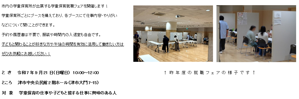 津市内の放課後児童クラブ一覧は 青少年の健全育成と放課後児童クラブ(学童保育) をご確認ください。