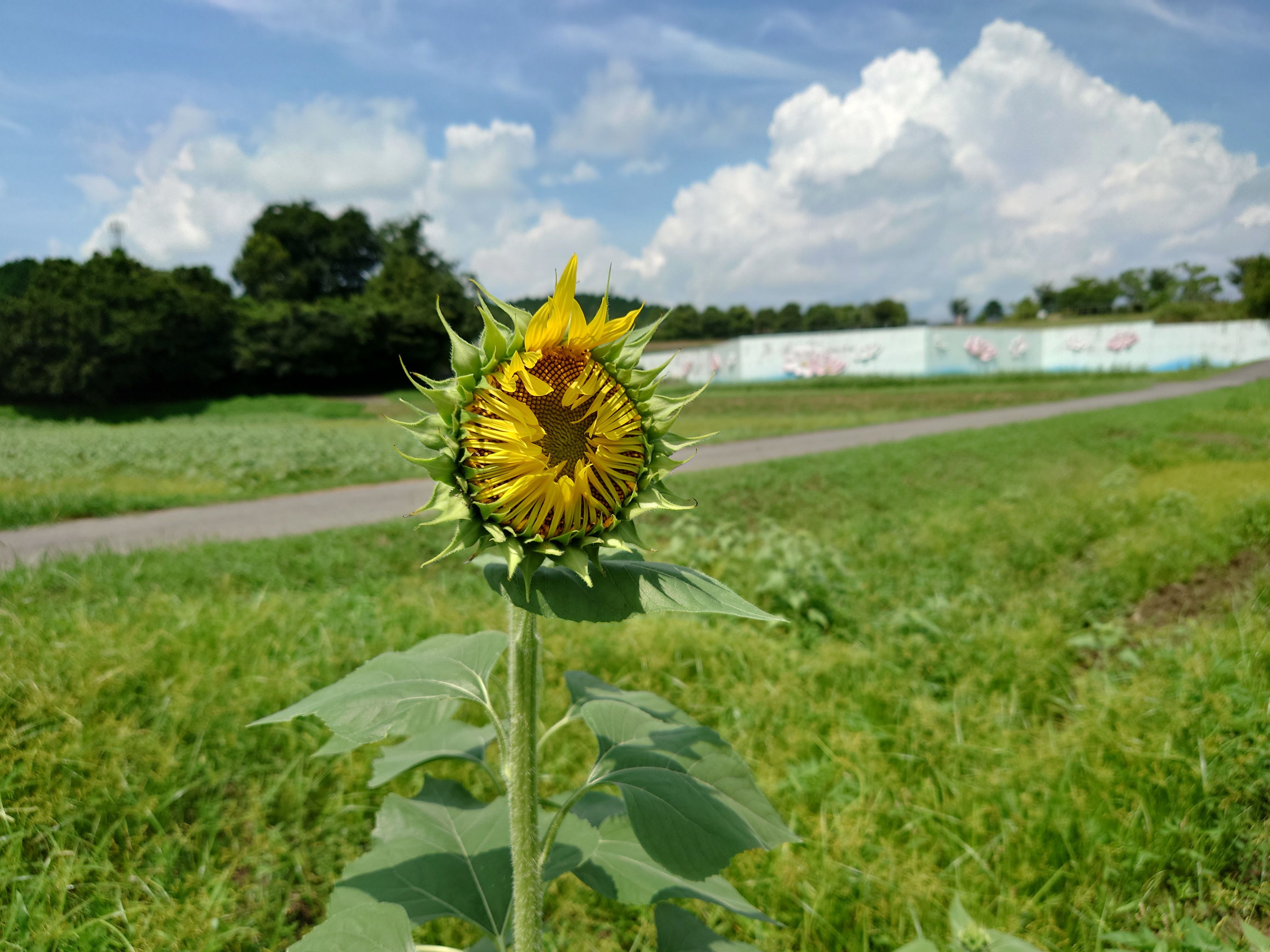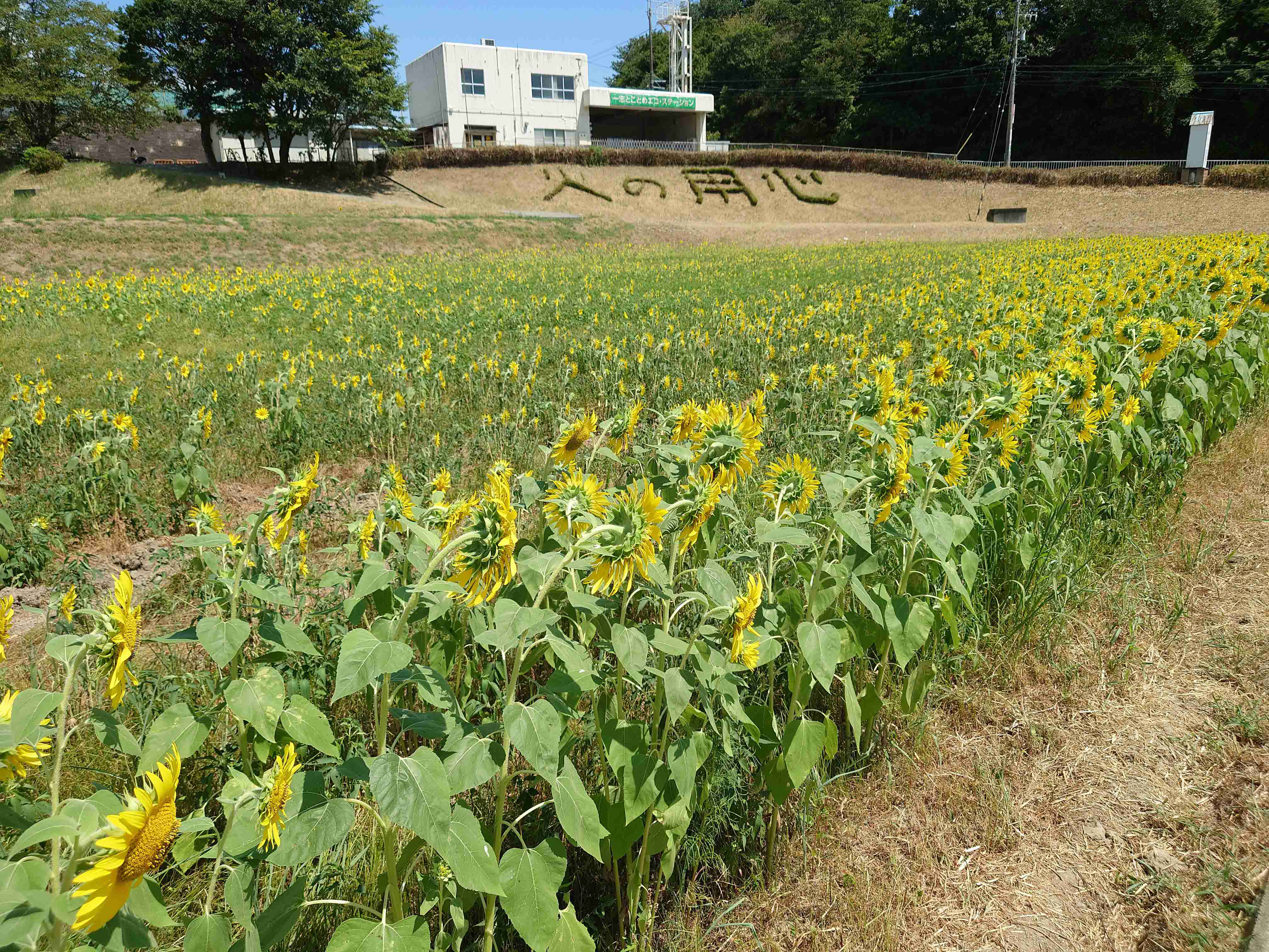 一面のひまわり畑にはなっていませんが、雑草や台風、大雨に負けなかったひまわりが咲いています。