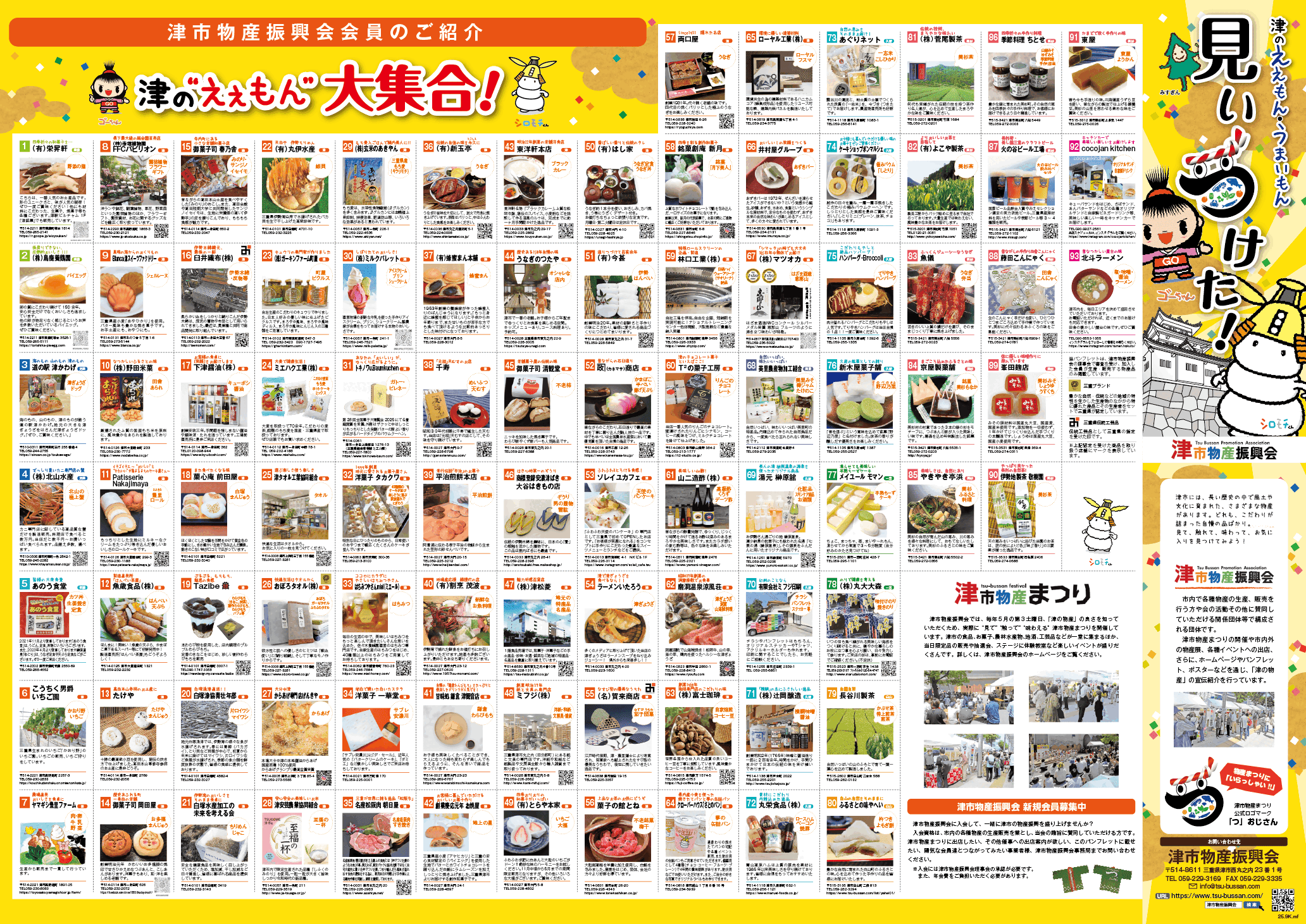 また、津市物産まつりの開催や市内外の物産展、各種イベントへの出店、さらに毎年更新される「津ぅのええもん・うまいもん見ぃつけた!」パンフレットなどを通じ「津の物産」の宣伝紹介を行っています。
