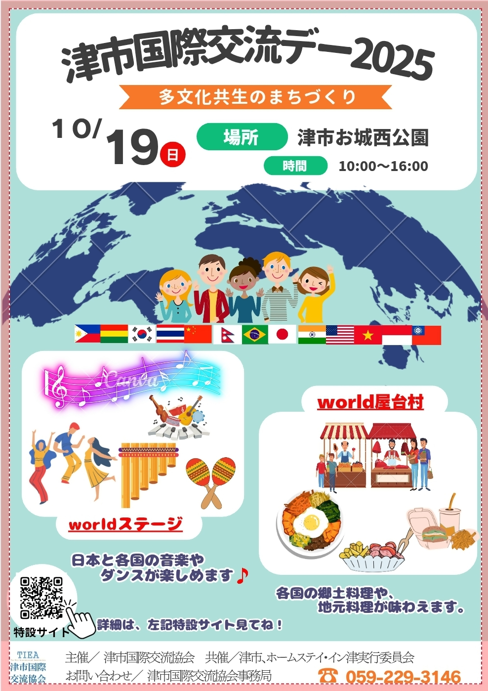 世界の文化に触れ、たくさんの方々と国際交流をしながら、楽しい秋の一日を津市でお過ごしください。