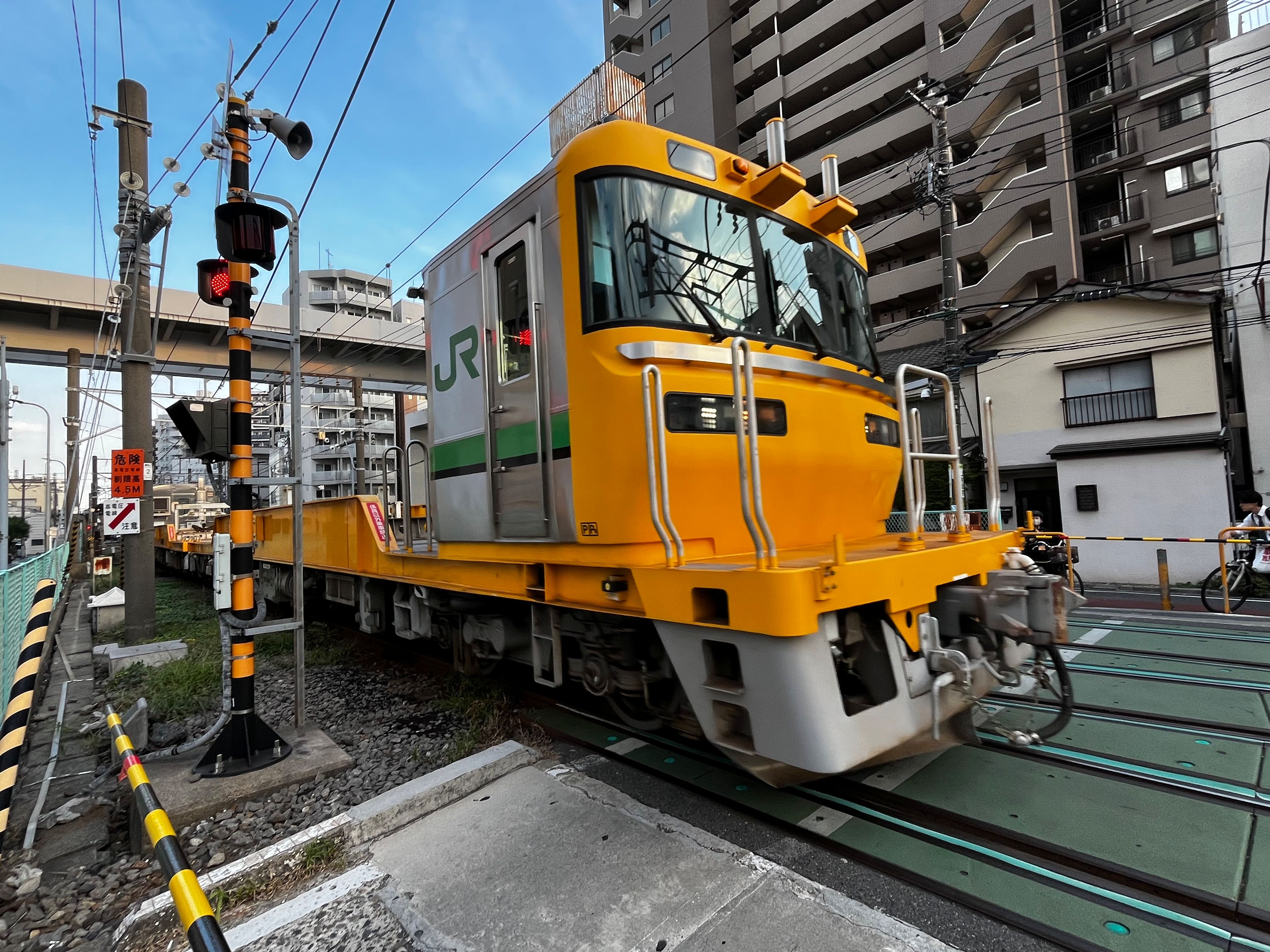 この日記でも時々登場する通勤路にある常磐線貨物専用線沿いの踏切を渡ろうとしていたところ、普段はなかなか見かけない珍しい車両に出会いました。